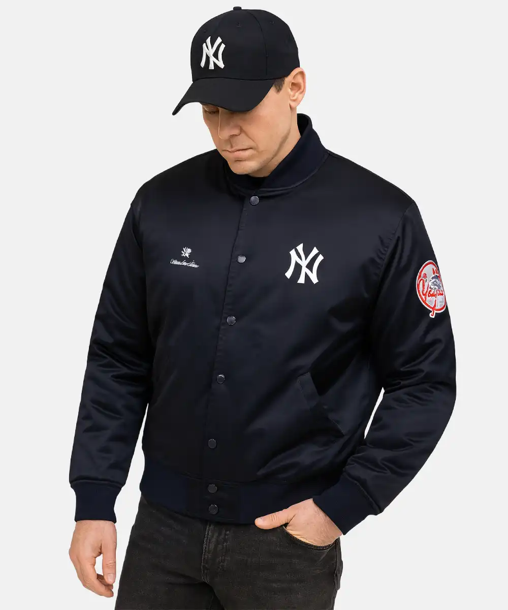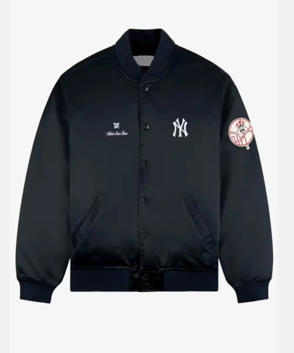 What makes this Yankees Aimé Leon Dore Navy Satin Varsity Jacket work for me is how easy it is to style. Some people throw it over a hoodie for colder nights, others keep it simple with jeans and sneakers. I’ve even seen it paired with cargos for that proper streetwear look. The navy tone is deep and versatile, while Aimé Leon Dore’s detailing makes it stand out in a quiet way. It’s not one of those jackets you wear once and forget—it becomes part of your rotation.