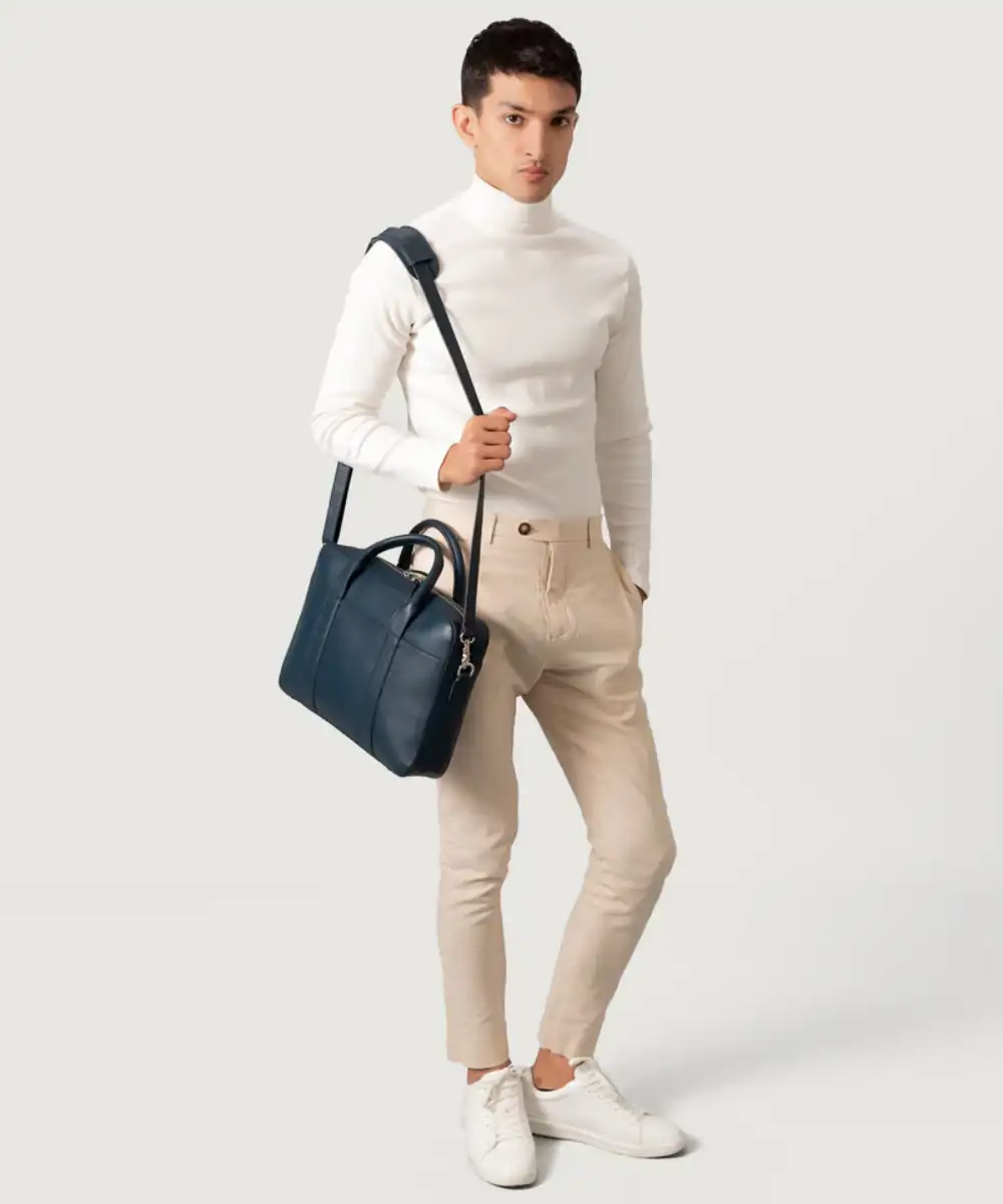 The Captain Midnight Blue Leather Briefcase